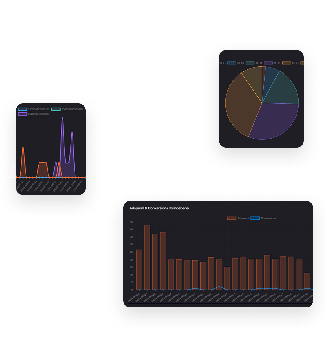 Automatic KPI analysis and optimization. AdAny analyzes your ads fully automatically on a daily basis and tells you where you’re wasting money.